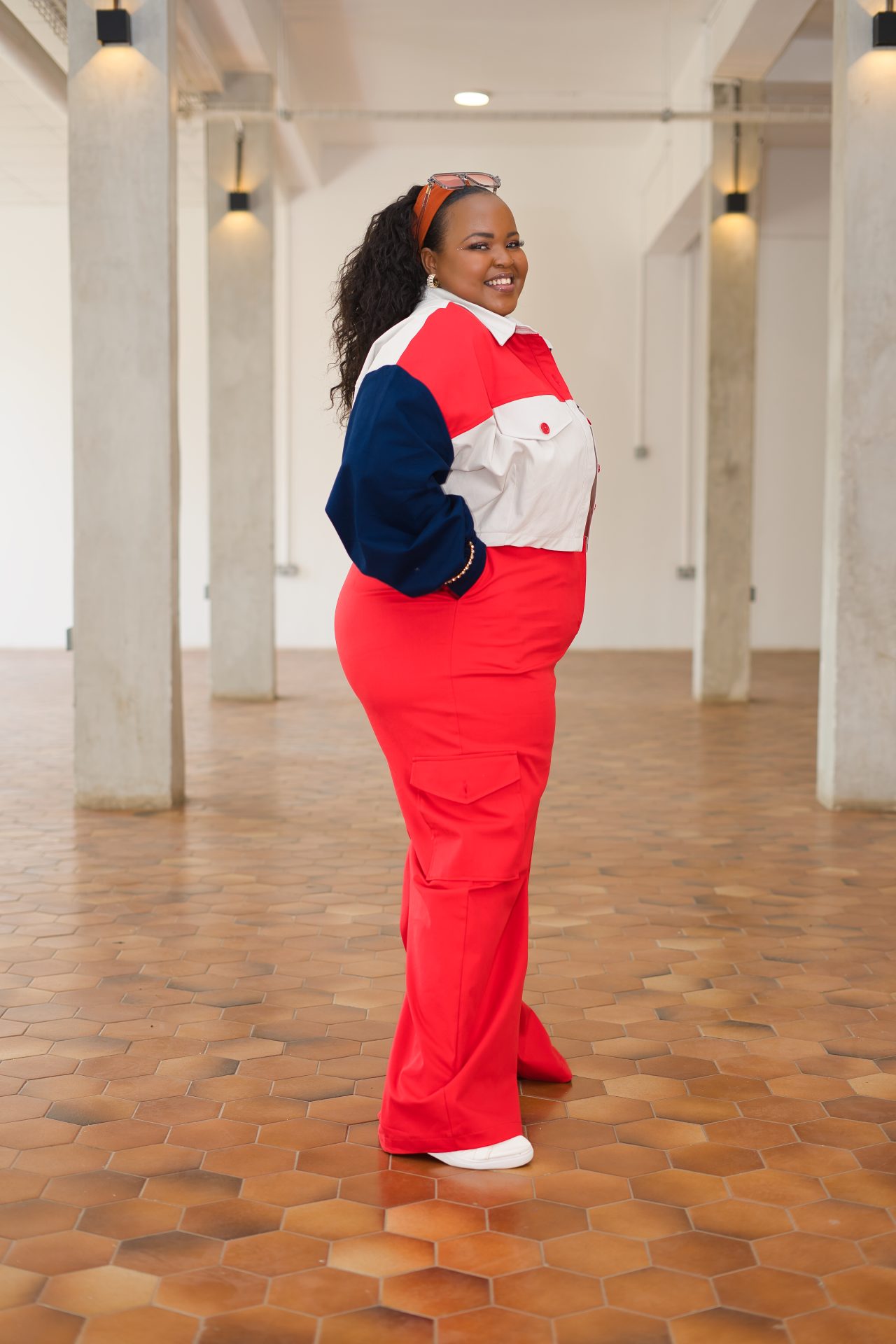 Designed for comfort and utility, these cargo pants feature roomy side pockets and an elastic waistband at the back for a flexible, flattering fit. Tailored from soft yet structured fabric, they strike the perfect balance between laid-back and polished. Pair them with a tee or shacket for an effortlessly cool, everyday look.