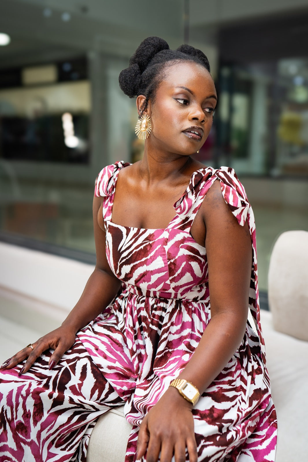 - Off-shoulder neckline
