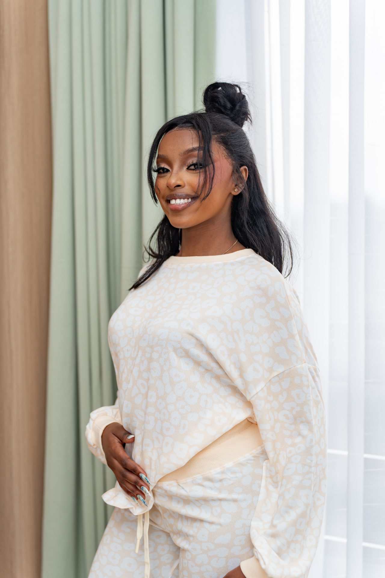 Whether you’re lounging, running errands, or enjoying a cozy day in, our versatile loungewear makes comfort look effortlessly stylish. The elastic waistband offers a flexible fit, while practical side pockets add both function and charm.